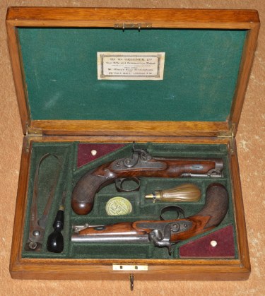 Fine Pair of Cased English Percussion Traveling Pistols, ca. 1820