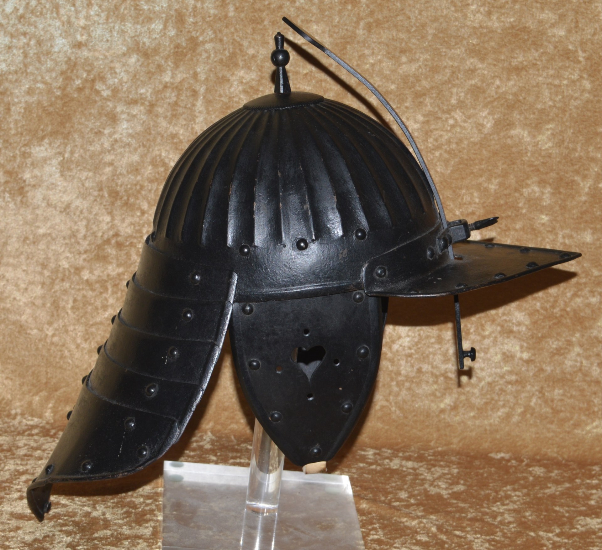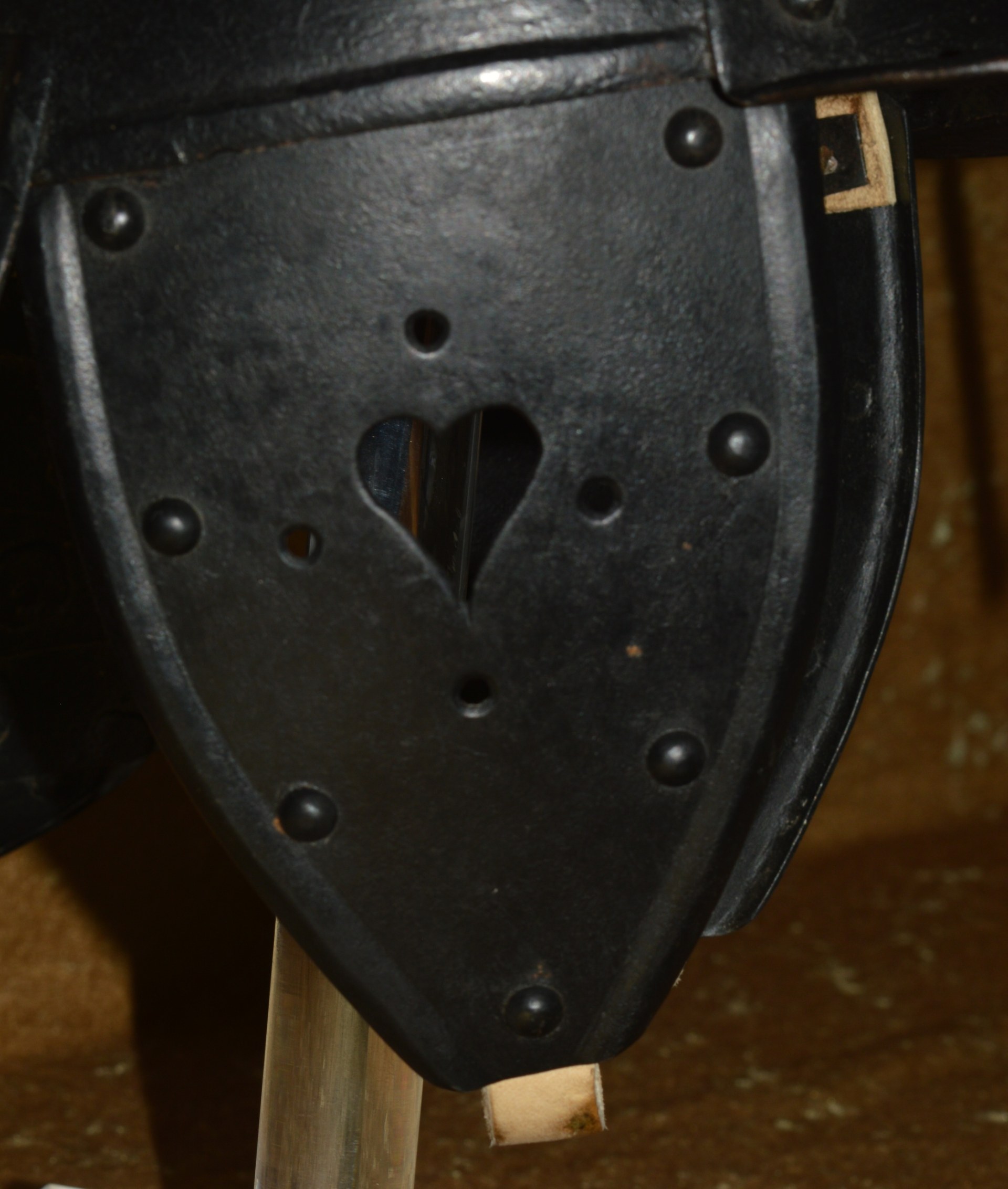 formed of 5 lames riveted together. Cheek pieces with heart cut-outs. Rather than the