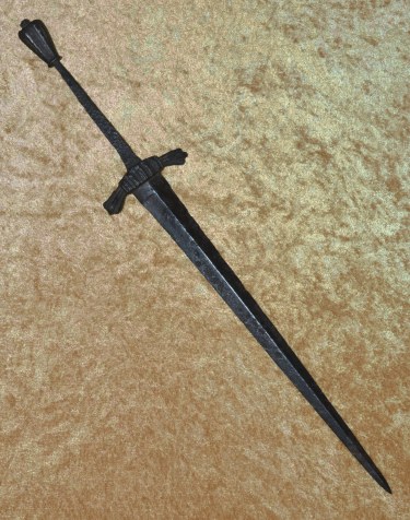 top to each panel with down-turned edges. Long straight quillons with a chiseled spiral