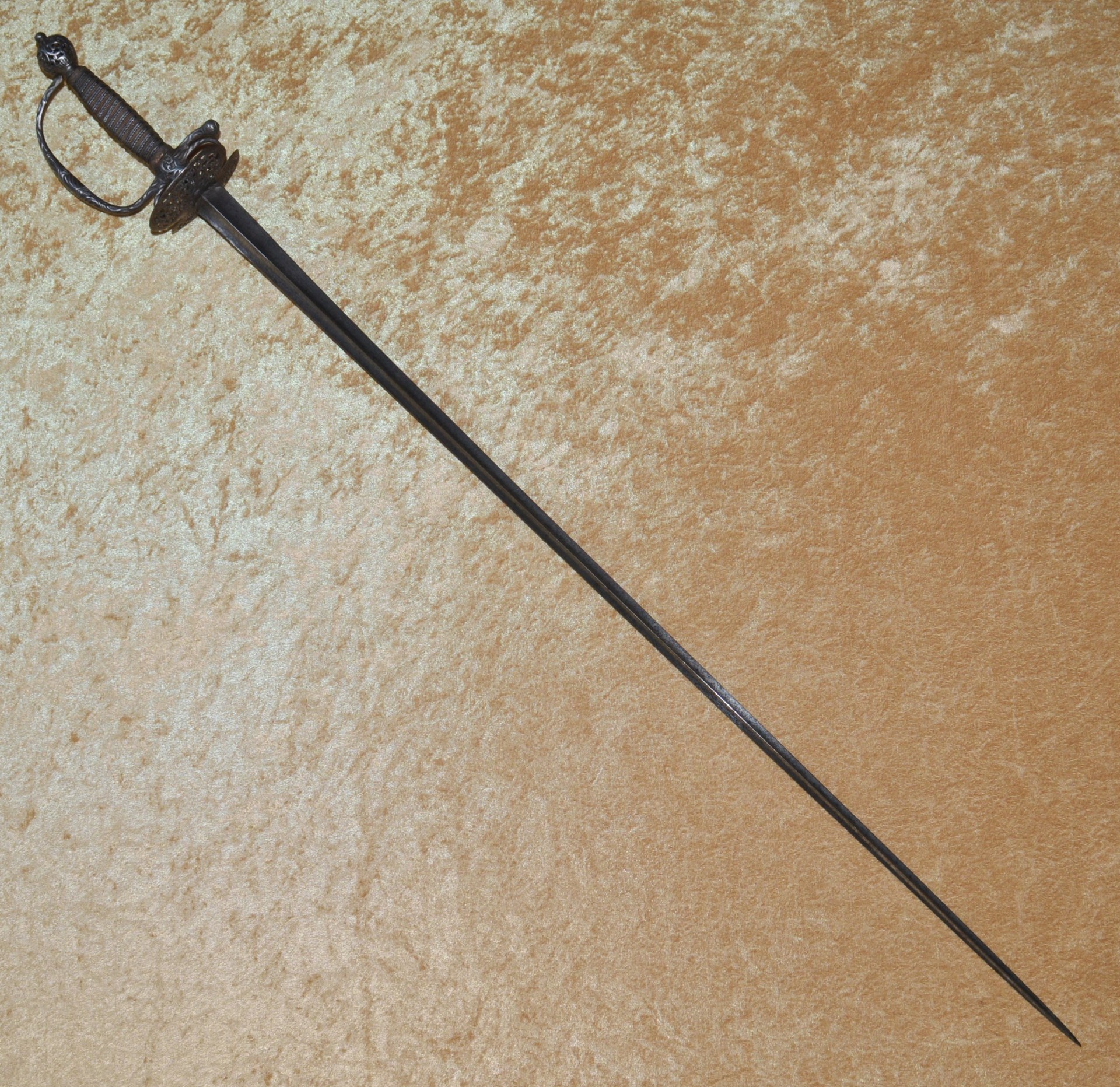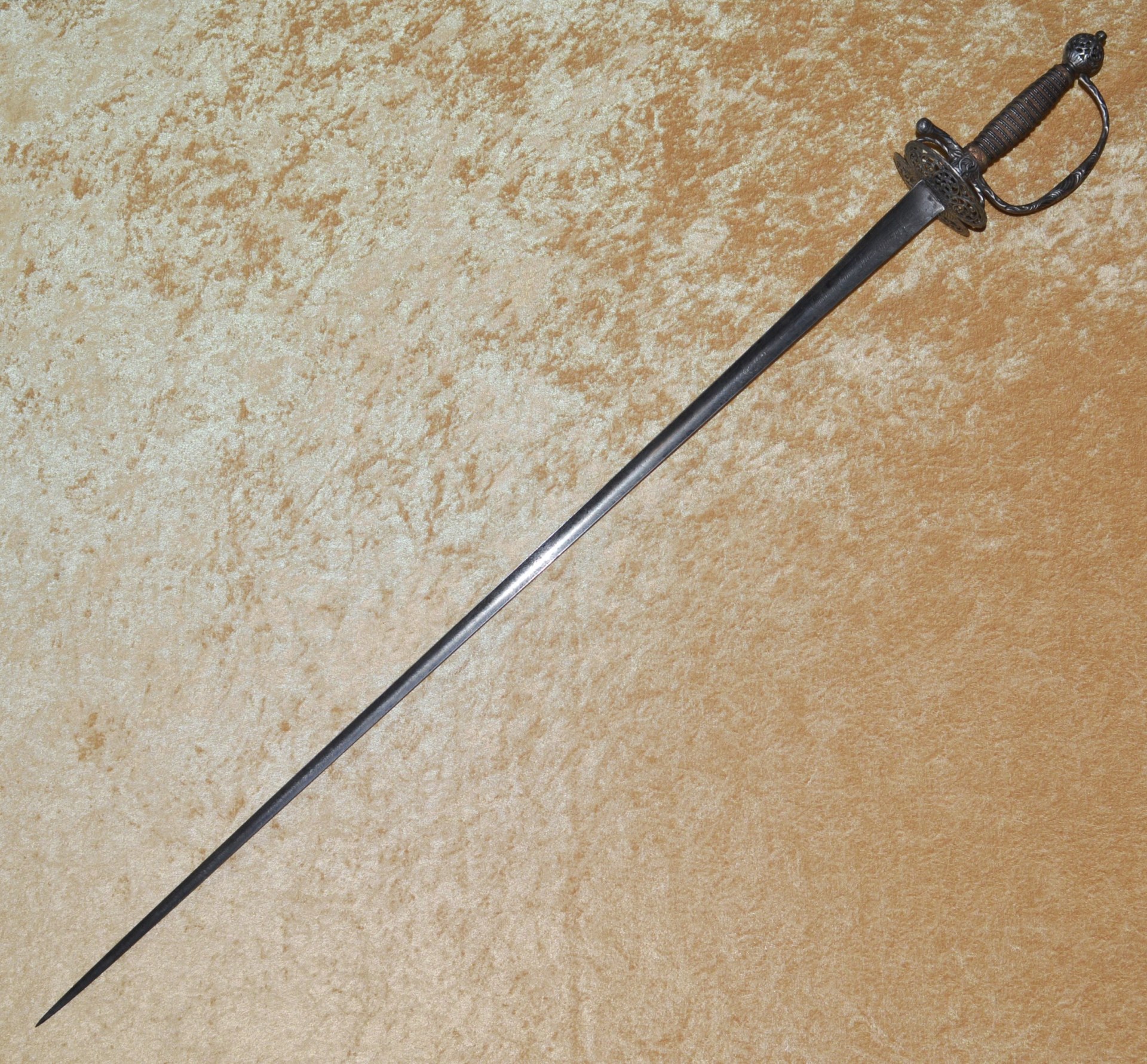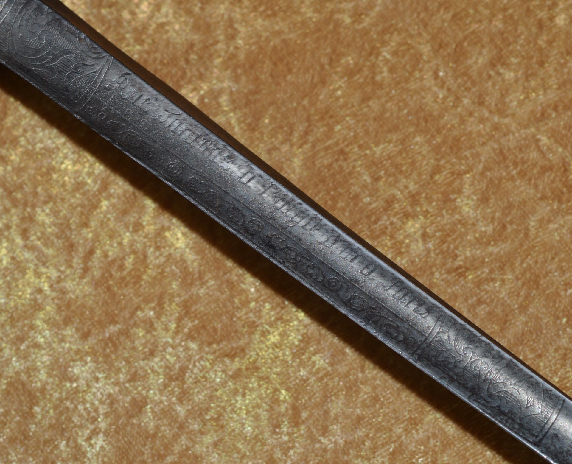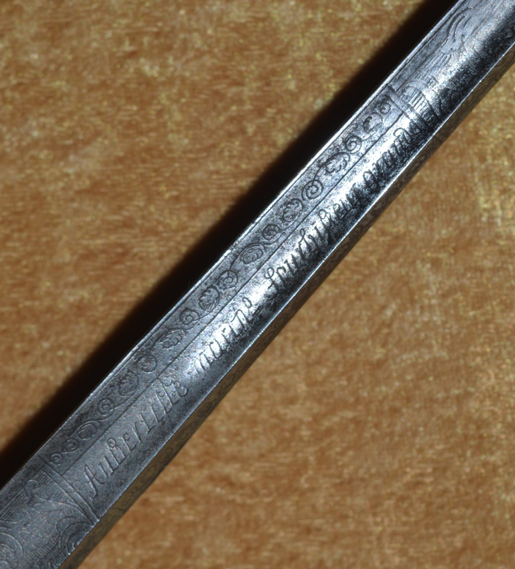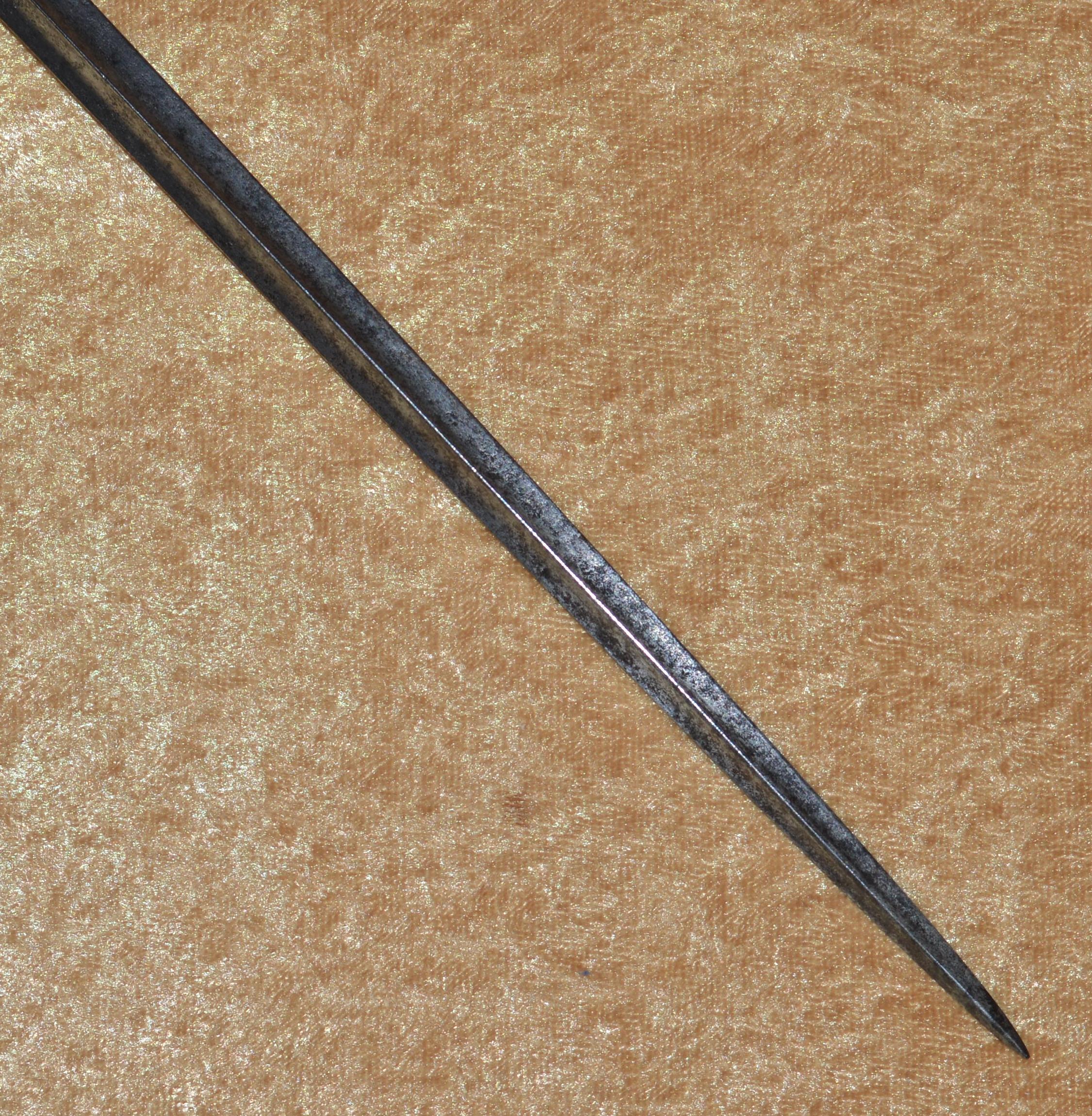 heads top and bottom. Hollow-ground 32″ blade of tringular section, finely etched and