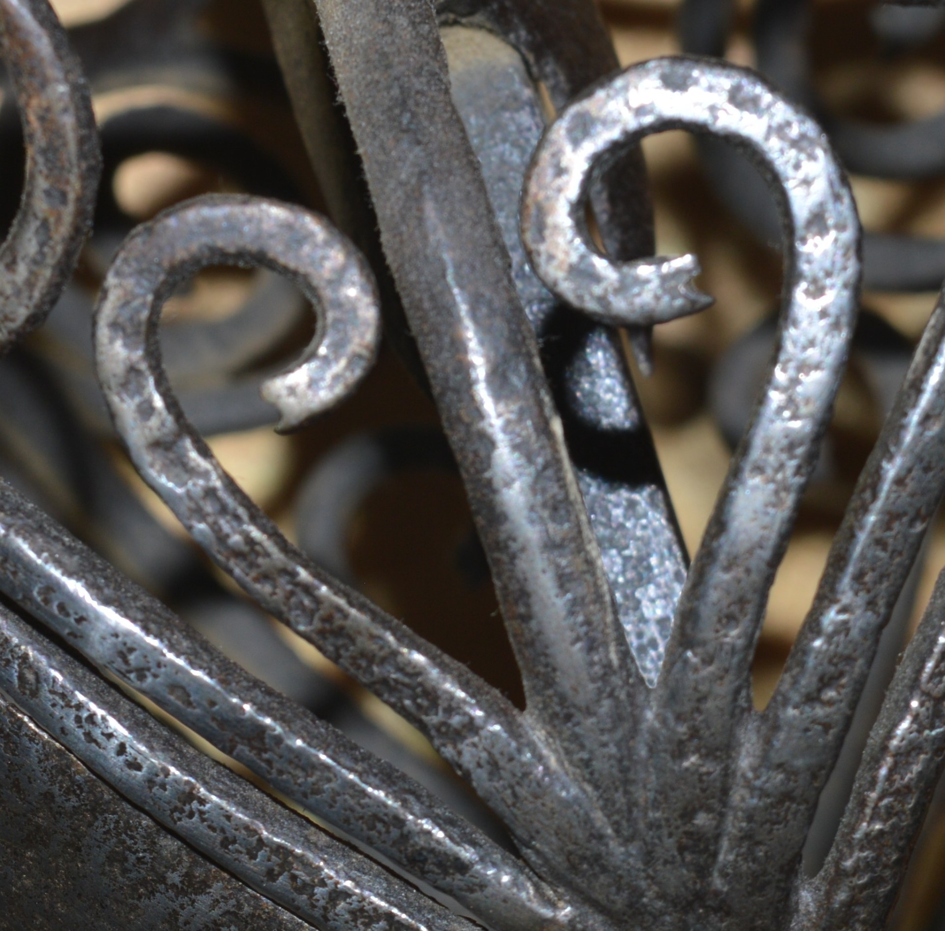 cup upwards and forming scrolls at the top, with more bars on the side in scroll and heart