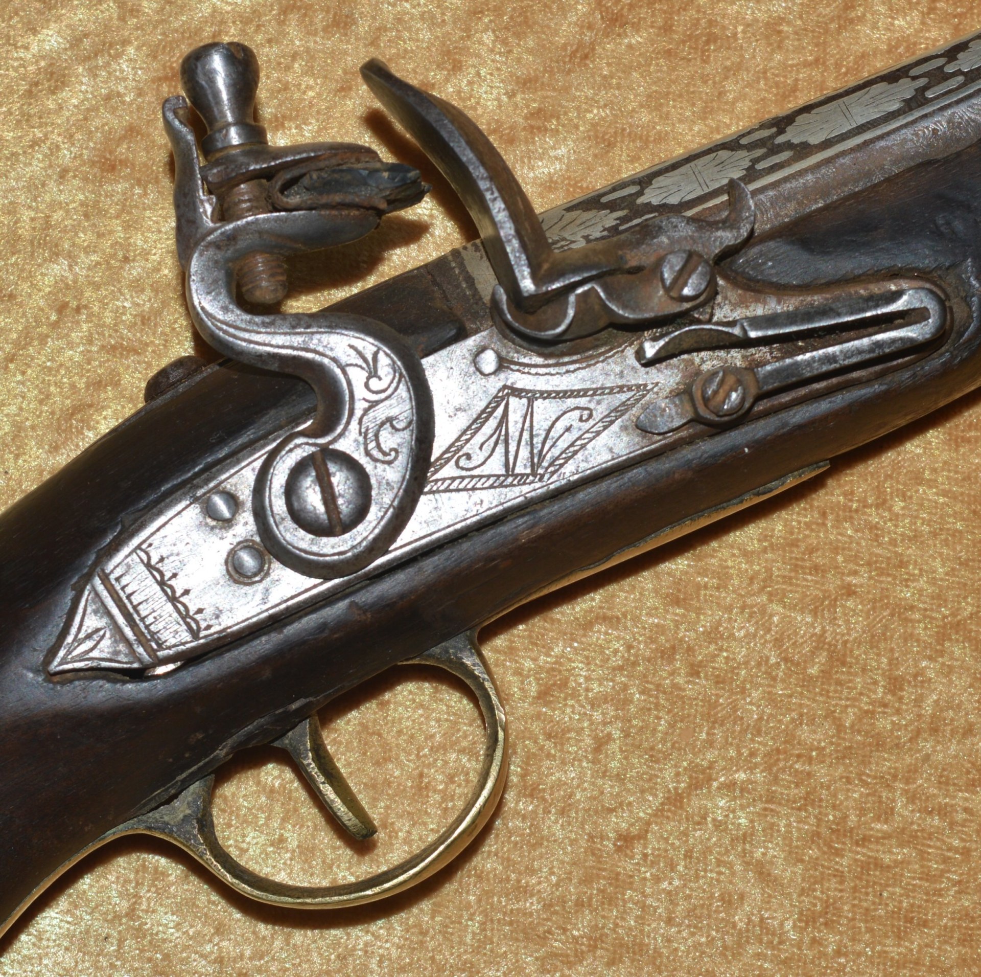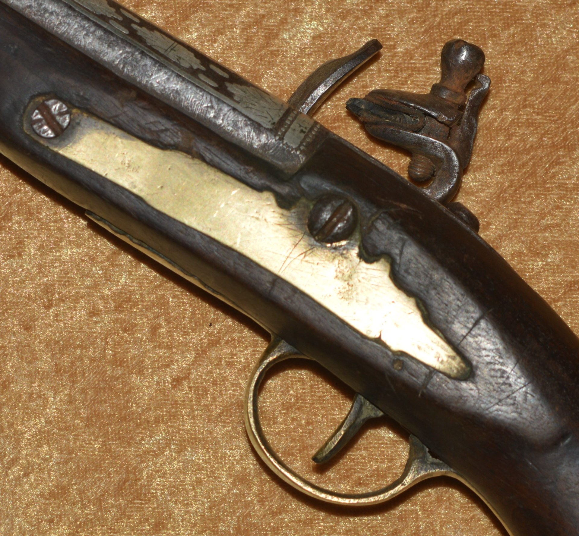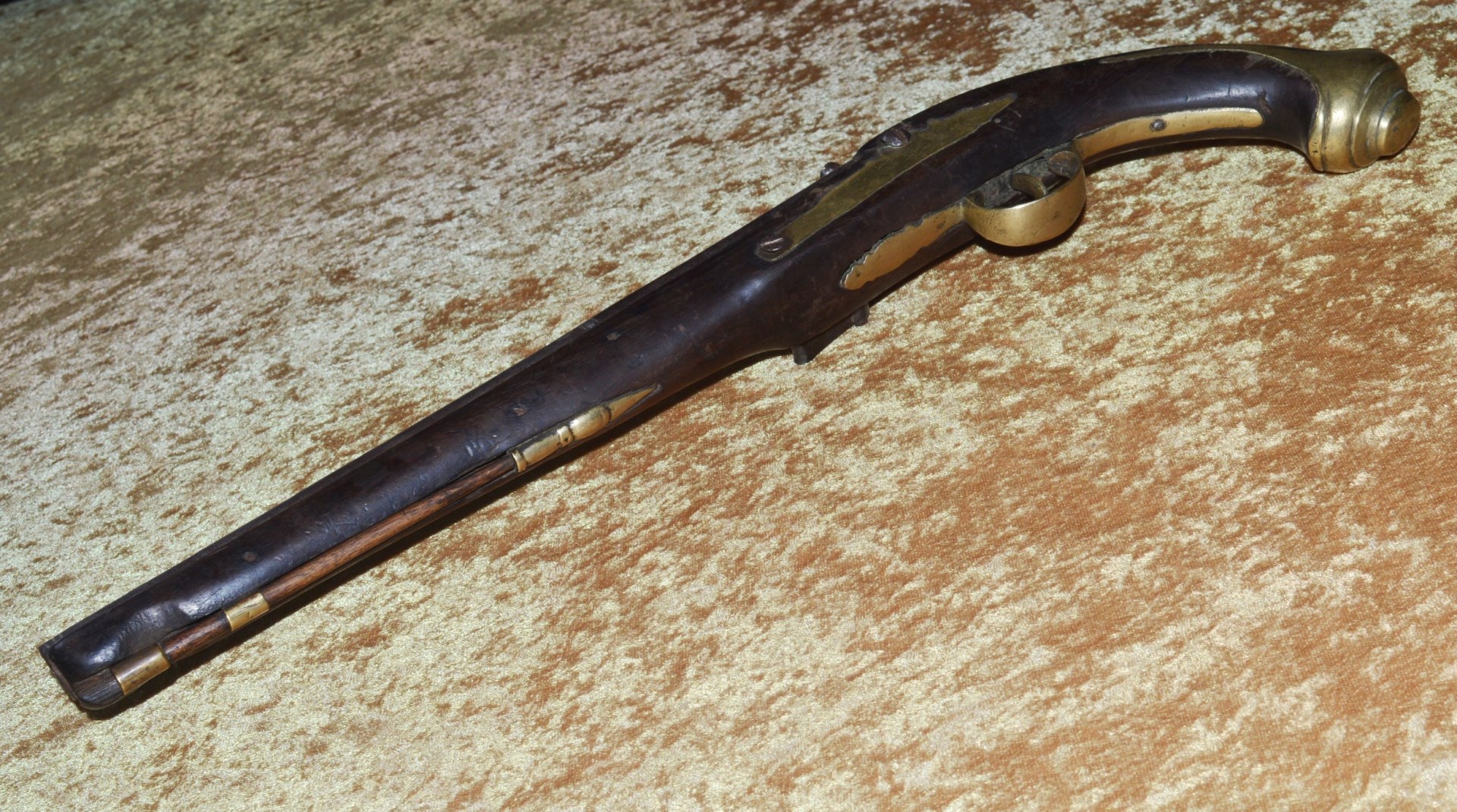 Walnut full stock with brass mounts, including trigger guard, butt cap and tang, side plate,