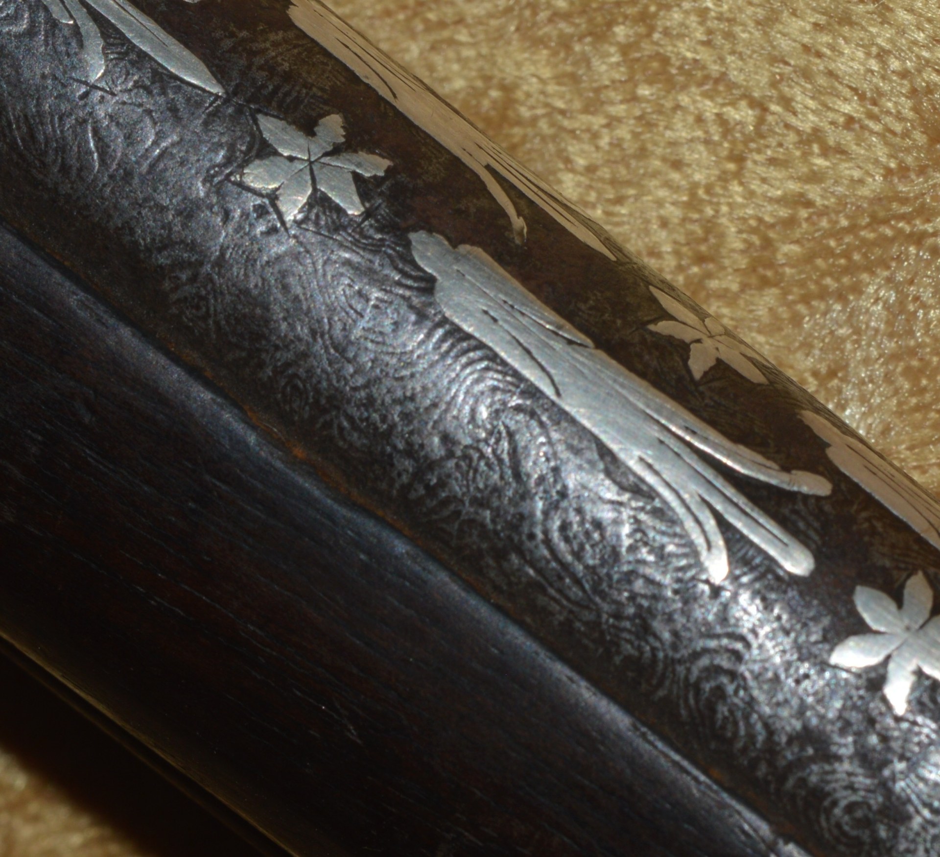 the cock with scrolling foliage. Fine quality tapering octagonal to round 11 1/2″ barrel of