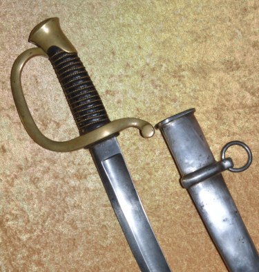 (light pitting and age staining). Horn scabbard with double incised line border and silver